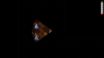 The player must find a door to escape the dark top-down maze filled with traps, armed only with a flashlight.